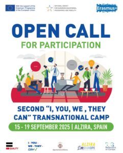 🌍 Join us in Alzira, Spain! Applications are open for the second transnational camp “I, YOU, WE, THEY CAN” — happening September 15–19, 2025 under the Erasmus+ programme.